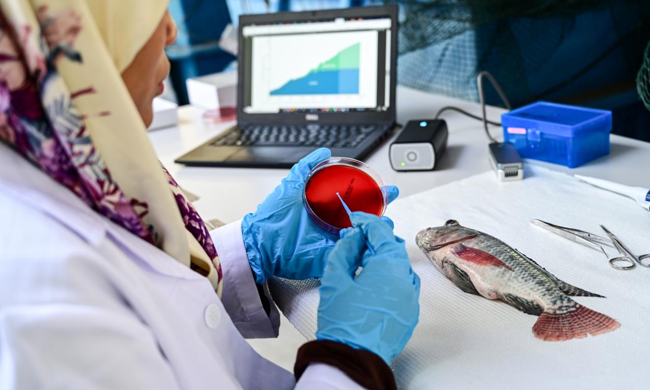 Aquatic animal diseases not only undermine food and nutrition security by reducing supply, but they can also cause foodborne illness in people. This warrants the need for a One Health approach, which treats the health of animals, people and environment as interconnected.