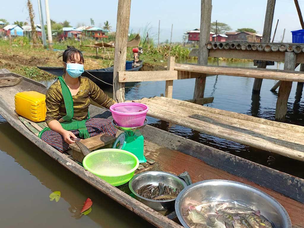 Working closely with the public and private sectors, we are developing innovations to mitigate the effects of COVID-19 on the nutrition, health and incomes of the most vulnerable. For example, WorldFish conducted a study in Myanmar, following up on a 2020 study with 143 fish supply chain actors, to assess the impacts of COVID-19 on the availability and price of aquatic foods and production inputs. The study found evidence suggesting women’s ability to work may have been negatively affected by the pandemic.