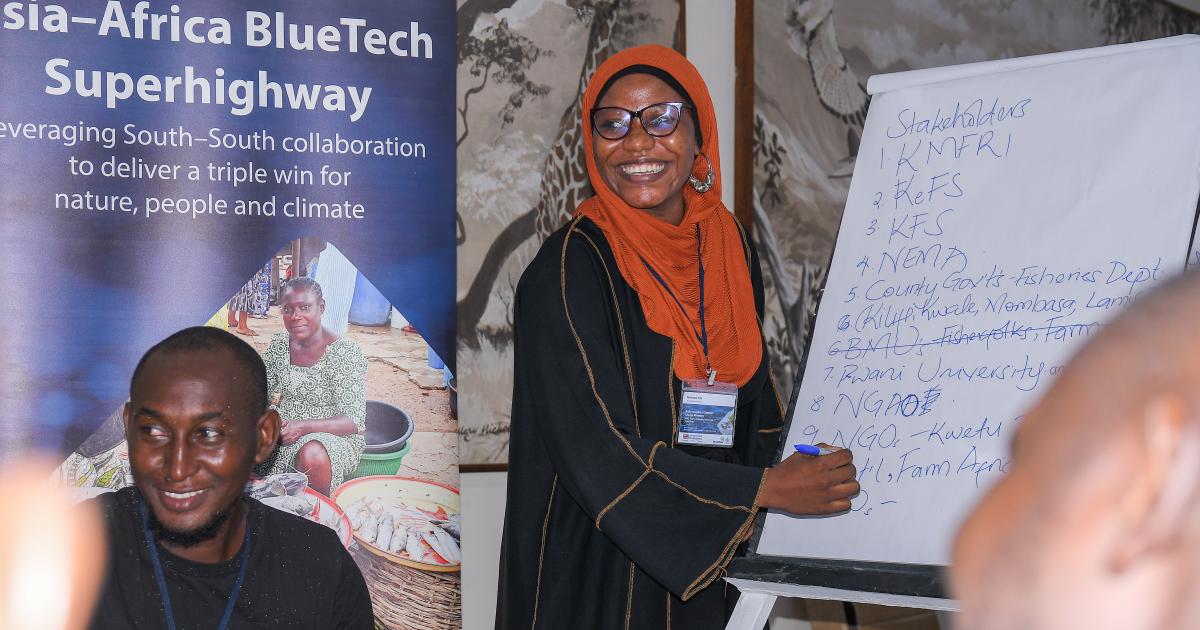 Now, Kenya is on a journey that may change its aquaculture fortunes. WorldFish’s Asia-Africa BlueTech Superhighway project (AABS), a project funded by the UK government and that KMFRI is partnering on, held a workshop in the coastal city of Mombasa, Kenya, in March 2024, bringing together the country’s stakeholders in aquaculture. The stakeholders, who cut across the aquaculture spectrum from farmers and traders to NGOs and research institutions, discussed the potential of IMTA in Kenya and developed a theory of change connecting the design of AABS activities and actors to tangible outcomes in the participating communities.