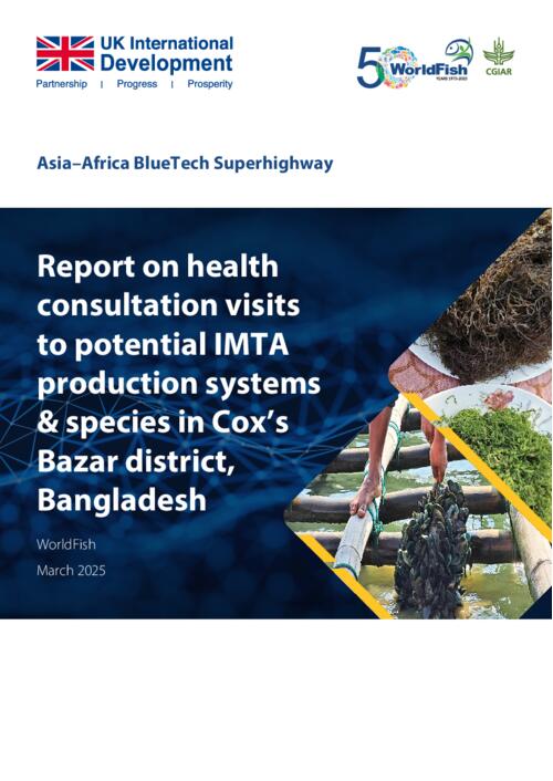 Khor LS, Rheman S, Ali MS, Bhuyain MAB, Al Mahmud A, Hossain S, Delamare-Deboutteville J and Verner-Jeffreys D. 2025. Report on health consultation visits to potential IMTA production systems & species in Cox’s Bazar district, Bangladesh. Penang, Malaysia: WorldFish. Report: 2025-30.