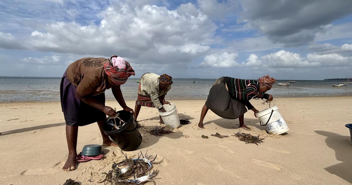 At dawn in coastal Mozambique, groups of women make their way to the shore. Some walk alone, others accompanied by children or neighbors, but all are there to glean. For 6 to 8 hours each day they wade through shallow waters, searching and collecting crabs, clams, oysters, and other bivalves. The gleaners then carry their harvests back to the shore or home. But that’s not the end of the work. Women gleaners also take on the labor-intensive task of processing oysters and clams, shucking, washing, boiling, smoking, and drying them, often for a further 2 to 3 hours. Gleaning is hard work, grueling, uncertain, and deeply undervalued but is a vital source of sustenance and income, sustaining families and feeding coastal communities.