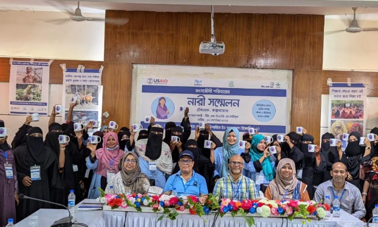 ECOFISH II has empowered women in artisanal fishing communities by building their capacity and connecting them with local service providers through WINGs and CSGs. The social capital built through WING and CSG has also fostered leadership skills, strengthened community ties, and increased women’s recognition within their families and communities. ECOFISH II has expanded women’s engagement beyond their villages by facilitating their participation in forums like the Women Congress, where they share best practices, address challenges, and explore solutions to issues like market access and sustainable IGAs. The "Women's Congress" as a vital platform for bringing together community representatives to expand networks and access Upazila-level services, empowering them with new knowledge and promoting solidarity and collective action.